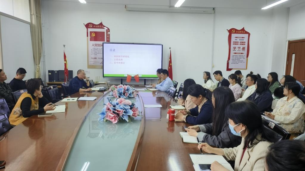 李中军对我院2025届考研情况进行了全面剖析。他指出,当前考研竞争日益激烈,学生个体存在差异,学院需以党建为引领,充分发挥党员辅导员、班主任的先锋模范作用,深入调研学生需求,建立“一人一档”考研跟踪机制,针对学生薄弱环节精准施策,切实提升学生的应试能力与综合素质。随后围绕“志愿选择”这一关键环节,李中军详细讲解了志愿查询及掌握录取难度的具体步骤。他强调,要运用好中国研究生招生信息网与招生院校研究生官网,通过查询院校招生简章、复试分数线、一志愿录取名单、调剂方案等文件信息,进行数据比对判定录取难度。通过这一过程,为学生提供全面、精准的信息参考,引导学生结合自身专业兴趣和职业规划,理性评估自身实力,避免盲目跟风填报,确保学生志愿选择既契合个人发展愿景,又提高考研上岸成功率,真正将“以生为本”的理念落到实处。