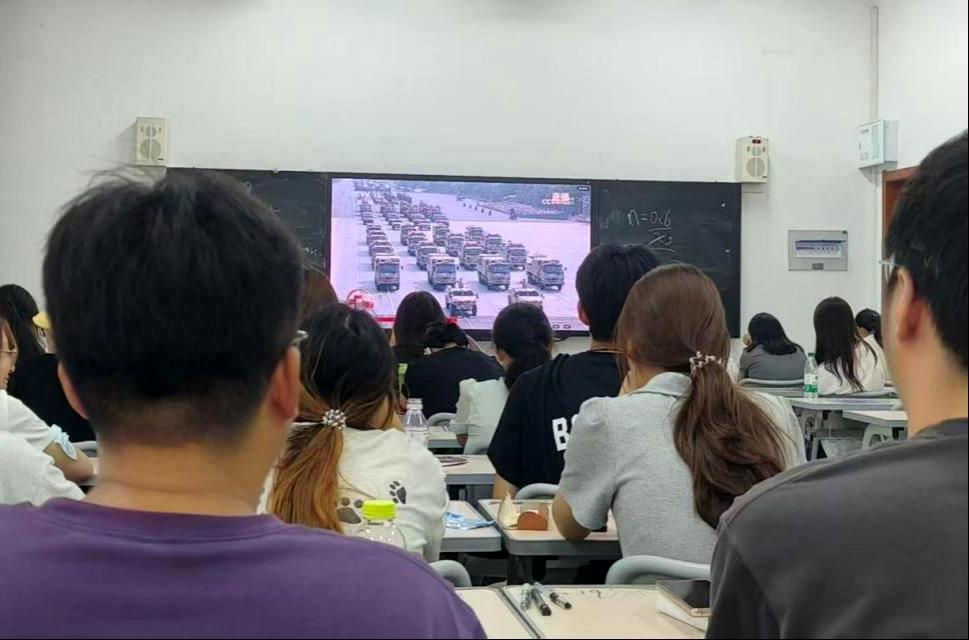 9月3日上午,纪念中国人民抗日战争暨世界反法西斯战争胜利80周年阅兵仪式盛大举行。球友会组织全体学生在各个教室统一观看直播,上好这堂沉浸式爱国主义思政课。