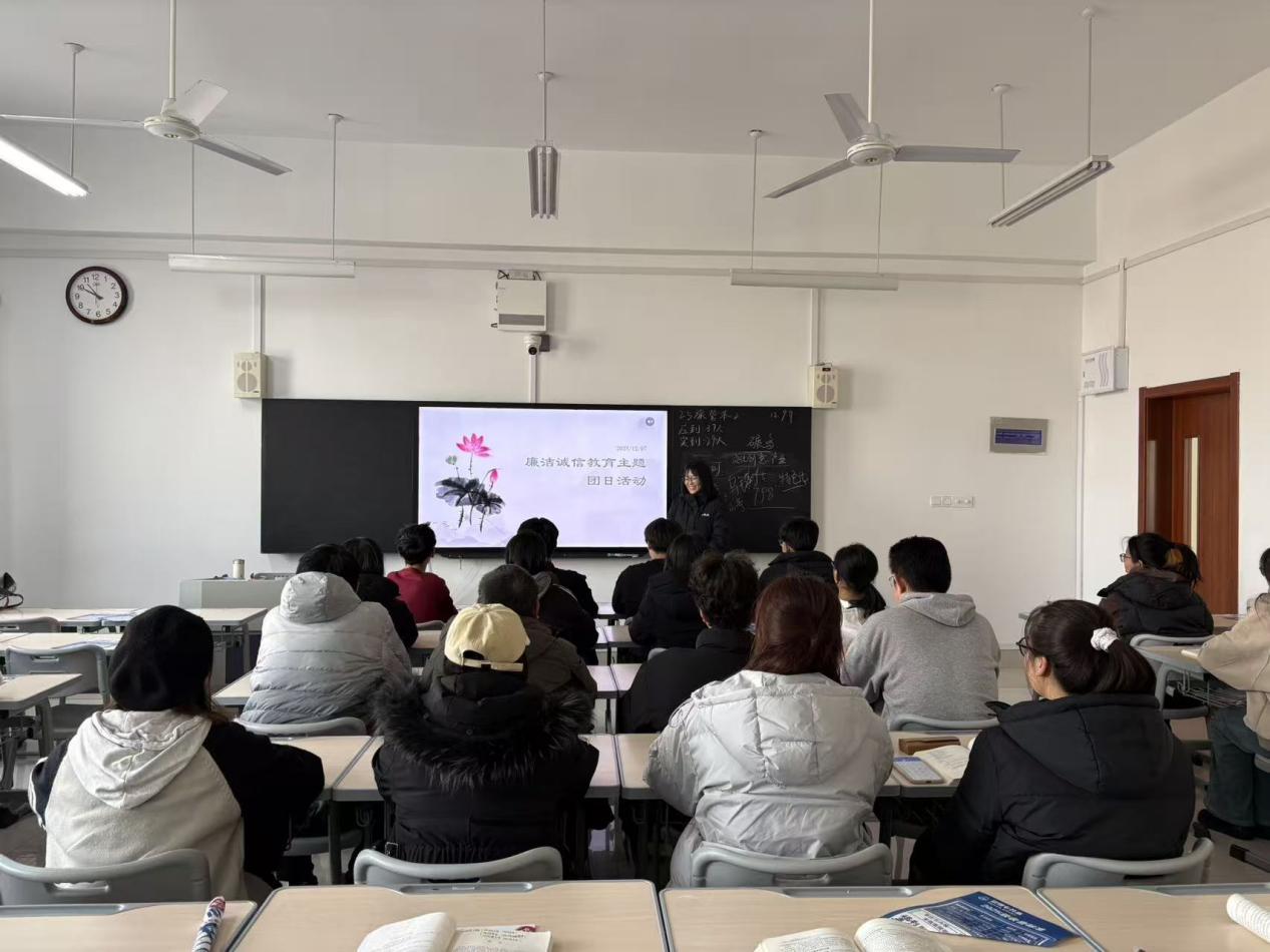 活动伊始,主讲人围绕团日主题,通过通俗的内涵阐释、典型的警示案例及详实的准则解读带领同学们深入了解廉洁诚信的核心要义以及对个人成长成才、校园和谐发展的重要意义。随后,主讲人从青年学生日常学习生活实际与廉洁诚信建设要求出发,细致讲解校园场景中可能涉及的廉洁诚信风险点,帮助同学们提升辨别与规避能力,筑牢个人廉洁诚信思想防线。最后,主讲人强调,廉洁诚信是立身之本、成事之基,作为新时代青年要牢固树立廉洁诚信意识,自觉践行廉洁自律要求,让青春在坚守道德底线、涵养优良品德中书写青春答卷。